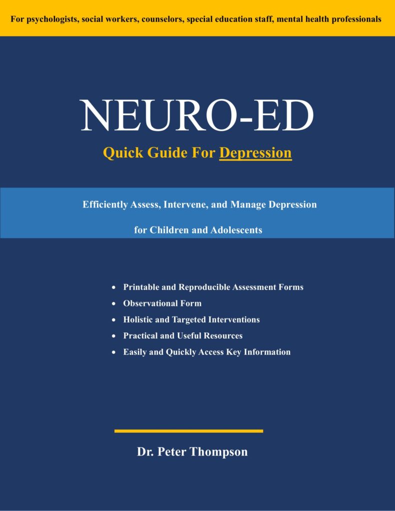 Part of the Neuro-Ed Professional Series for Mental Health Practitioners. This Guide is a Quick Reference to Assess, Intervene, and Manage Depression in Children and Adolescents.